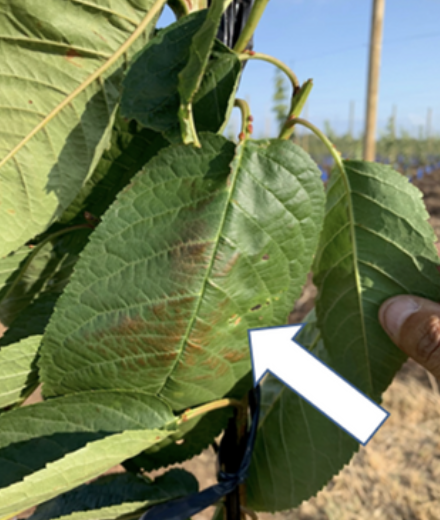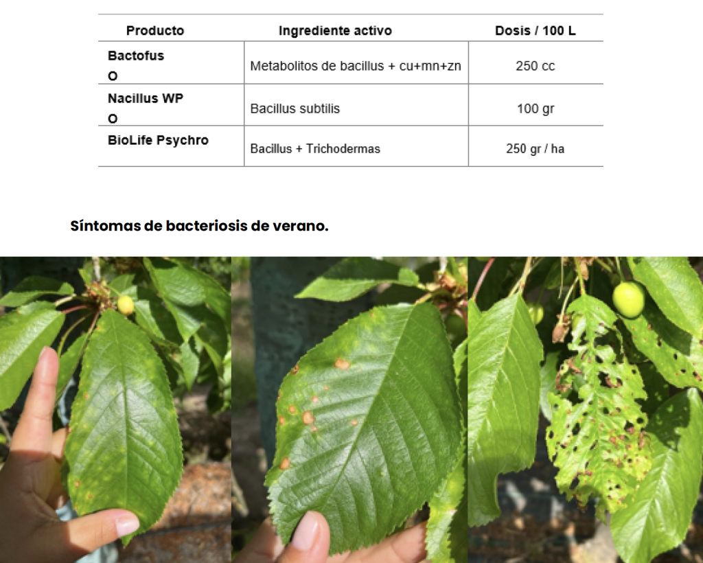 Enfermedad producida por Pseudomona siryngae y Siryngaepv., muy normal en primaveras frías, produce atizonamiento de brotes y manchas en hojas. Para el control de cáncer bacterial realizar la siguiente aplicación inmediatamente terminada la cosecha.