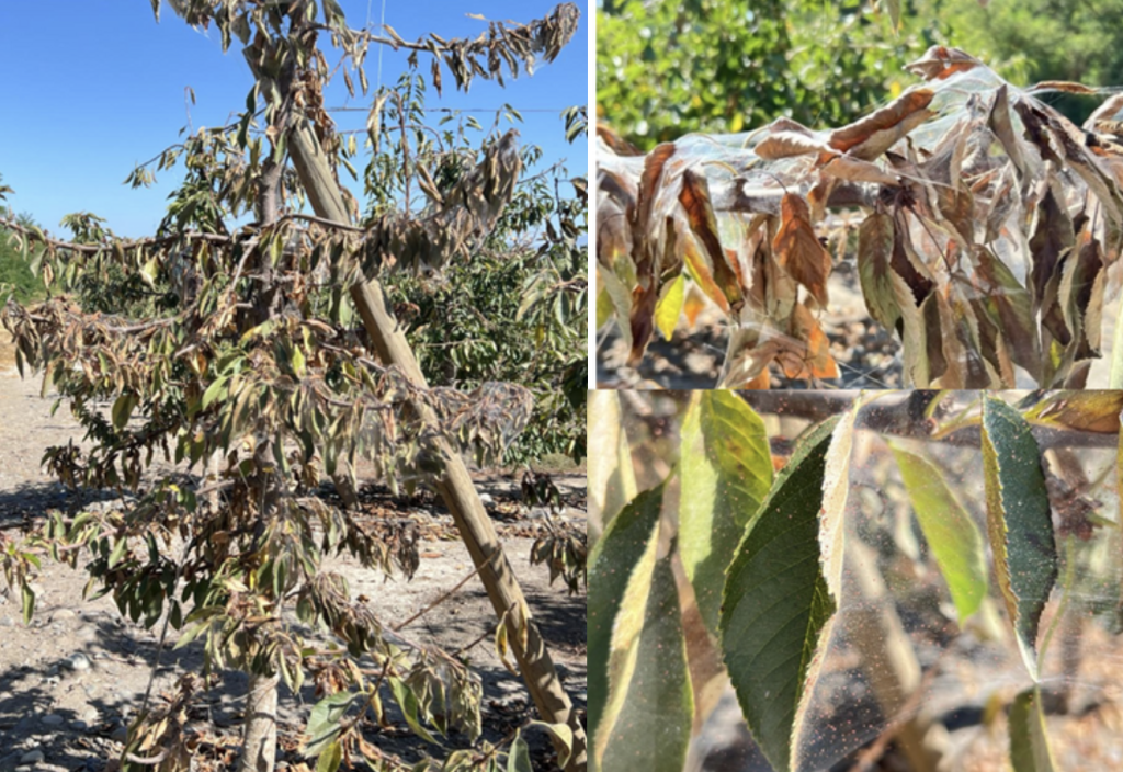 En años secos y de altas temperaturas su reproducción es muy rápida y agresiva, produciendo ataques severos de arañitas que puede provocar un gran estrés a la planta, llegando incluso a la defoliación y rebrota de plantas. Lo cual disminuye la capacidad fotosintética de las plantas, si el ataque se produce en precosecha afecta la calidad de fruta, si el ataque se produce en postcosecha afecta severamente la acumulación de reservas para la próxima temporada.