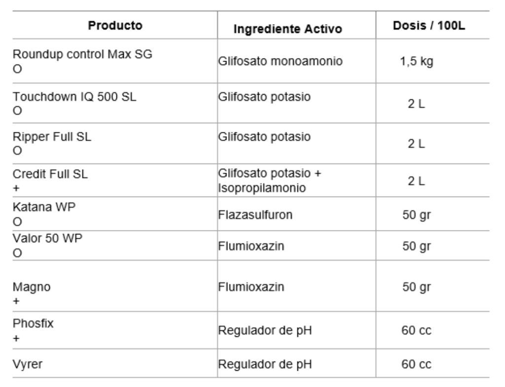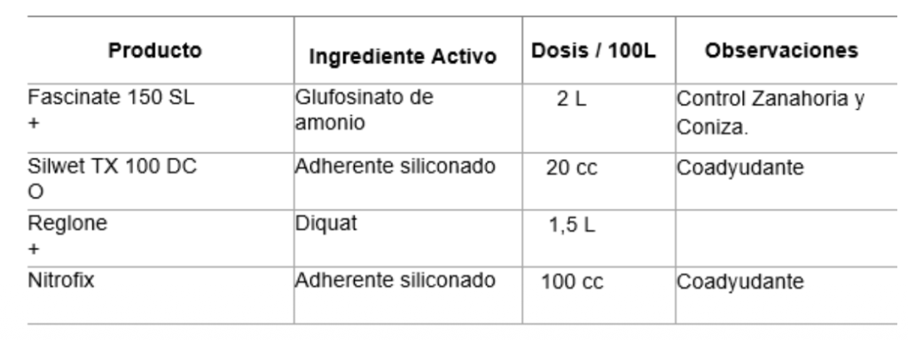 En caso de que existan malezas emergidas una vez terminada la cosecha les sugiero realizar una aplicación: